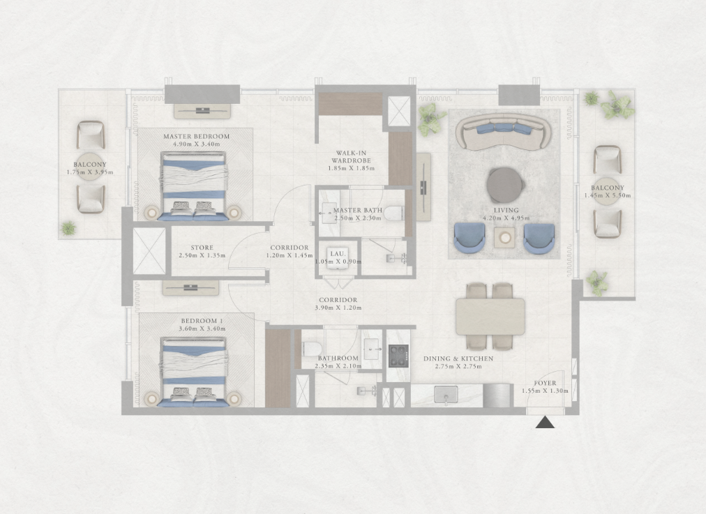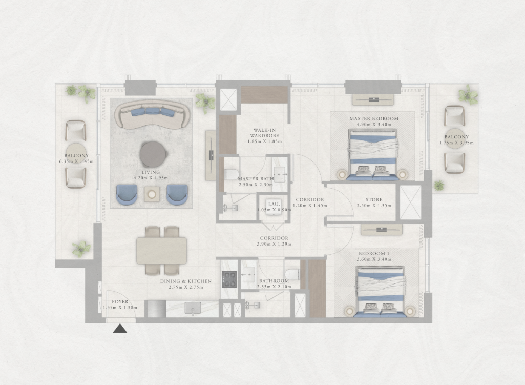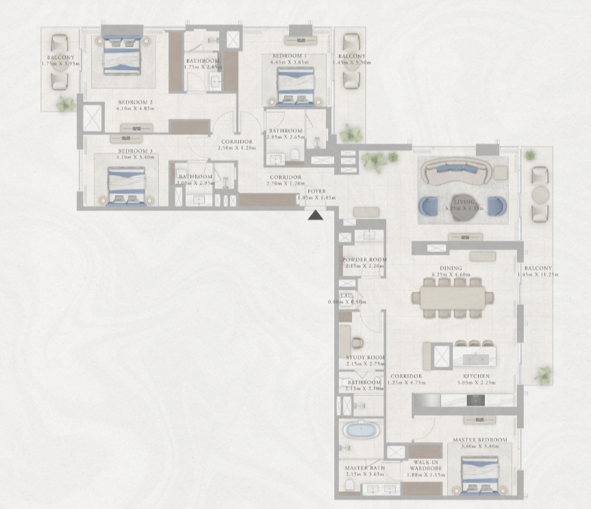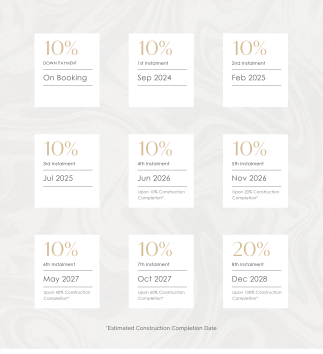 Enjoying a convenient yet elegant lifestyle is what it means to live here. The development features a central podium that is beautifully planted and serves as a hidden sanctuary connecting the buildings. In peaceful outdoor areas with soothing pools, residents can relax and find the ideal haven from the bustle of the city.