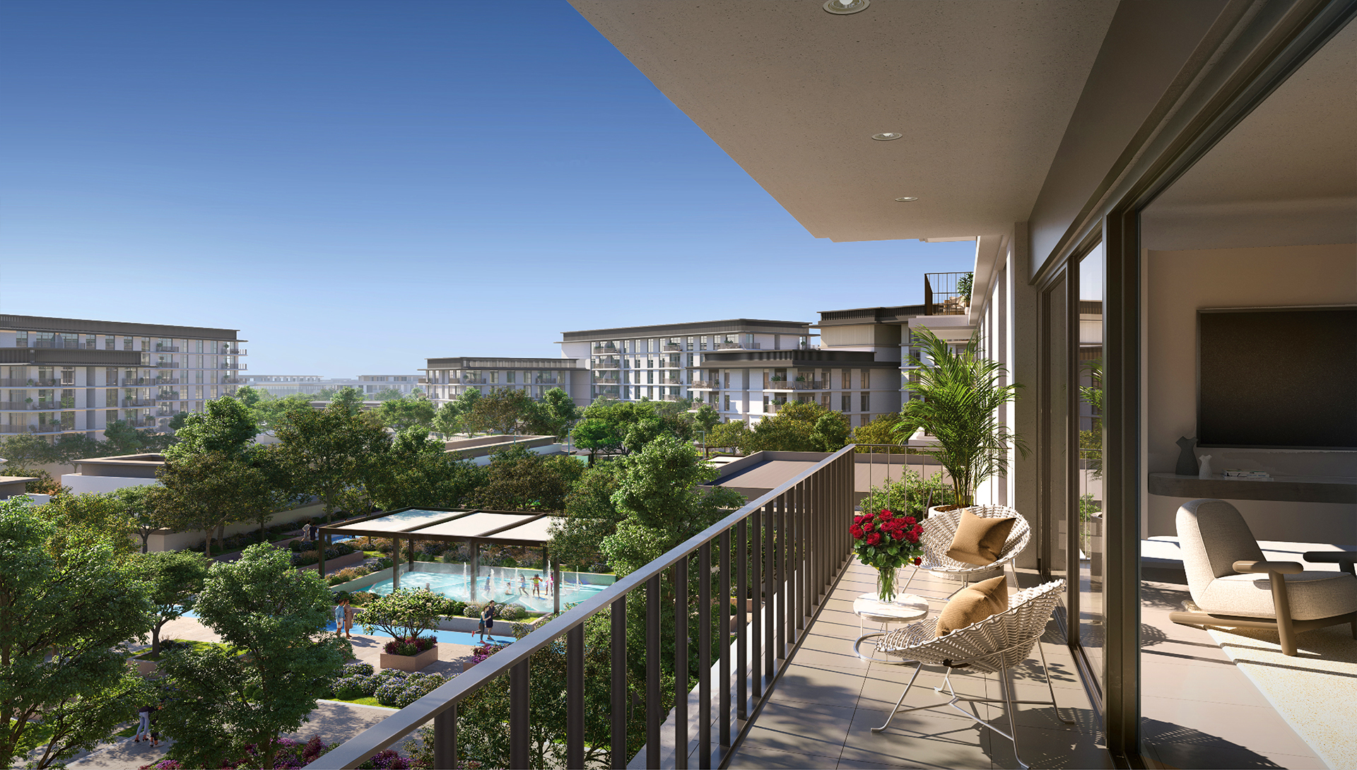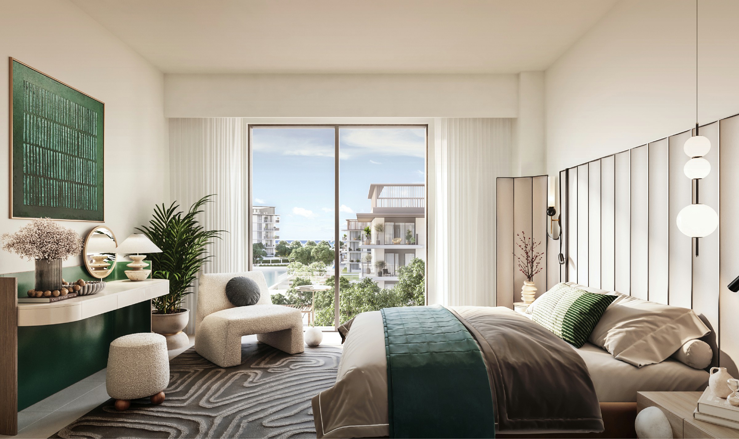 At Ocean Point, residents are treated to a daily panorama that captivates from sunrise to sunset. Expansive vistas stretch out, encompassing verdant landscapes, the lively pool area, and the distinct skyline of Dubai Downtown in the distance. This visual symphony presents a striking contrast between the serene beauty of nature and the polished glamour of city life.