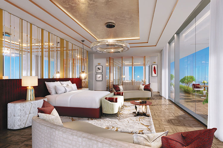 Inspired by the de Grisogono Signature rubies and the colour of chance, excitement and life itself. The Tower showcases stunning scarlet shades right from the magnificent lobby entrance to the interior detailing and furniture. its unique design, meant to emulate a cut diamond, is instantly recognisable from miles away. Each luxury apartment makes use of impeccable transformative living spaces , using movable walls to give you complete flexibility over your home.